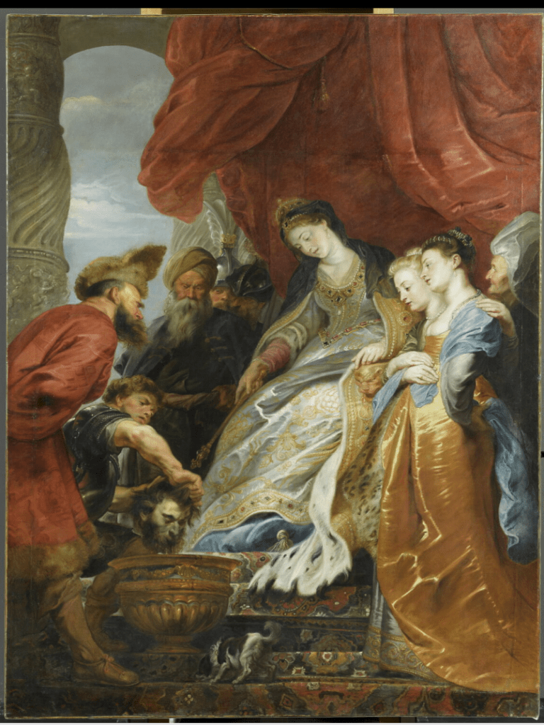 Fig. 1: Peter Paul Rubens, “Thomyris reine des Scythes fait plonger la tête du roi perse Cyrus dans un vase rempli de sang, pour venger son fils” (c. 1620-1625), Département des Peintures, Louvre Museum, Paris. Public Domain.